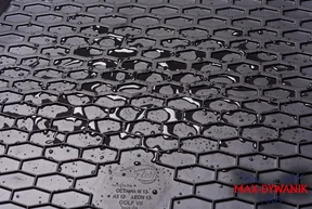 Powierzchnia dywaników posiada specjalną strukturę w kształcie plastra miodu, która nie tylko nadaje im nowoczesny wygląd, ale przede wszystkim zatrzymuje wodę, błoto i drobne zanieczyszczenia w wyznaczonych zagłębieniach. Dzięki temu brud nie rozlewa się po całej powierzchni, a wnętrze auta pozostaje czystsze przez dłuższy czas. Struktura ta ułatwia również czyszczenie – wystarczy strumień wody, by usunąć zabrudzenia zgromadzone w wgłębieniach.