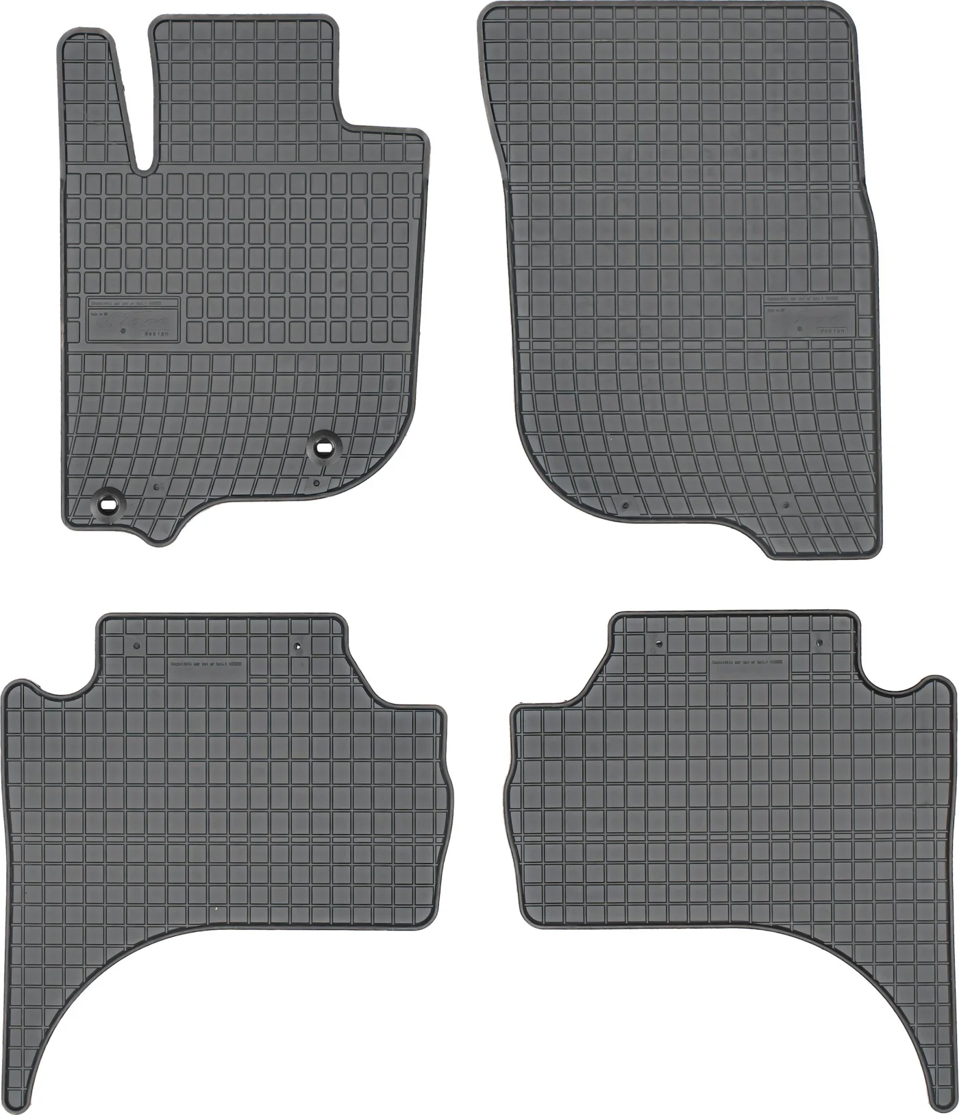 Zestaw stworzony przez firmę MAX-DYWANIK składający się z dywaników gumowych firmy FROGUM, które zostały zmodyfikowane o dedykowane mocowania wyprodukowane i zamontowane przez firmę MAX-DYWANIK według oryginalnegho rozstawu mocowań w samochodzie.