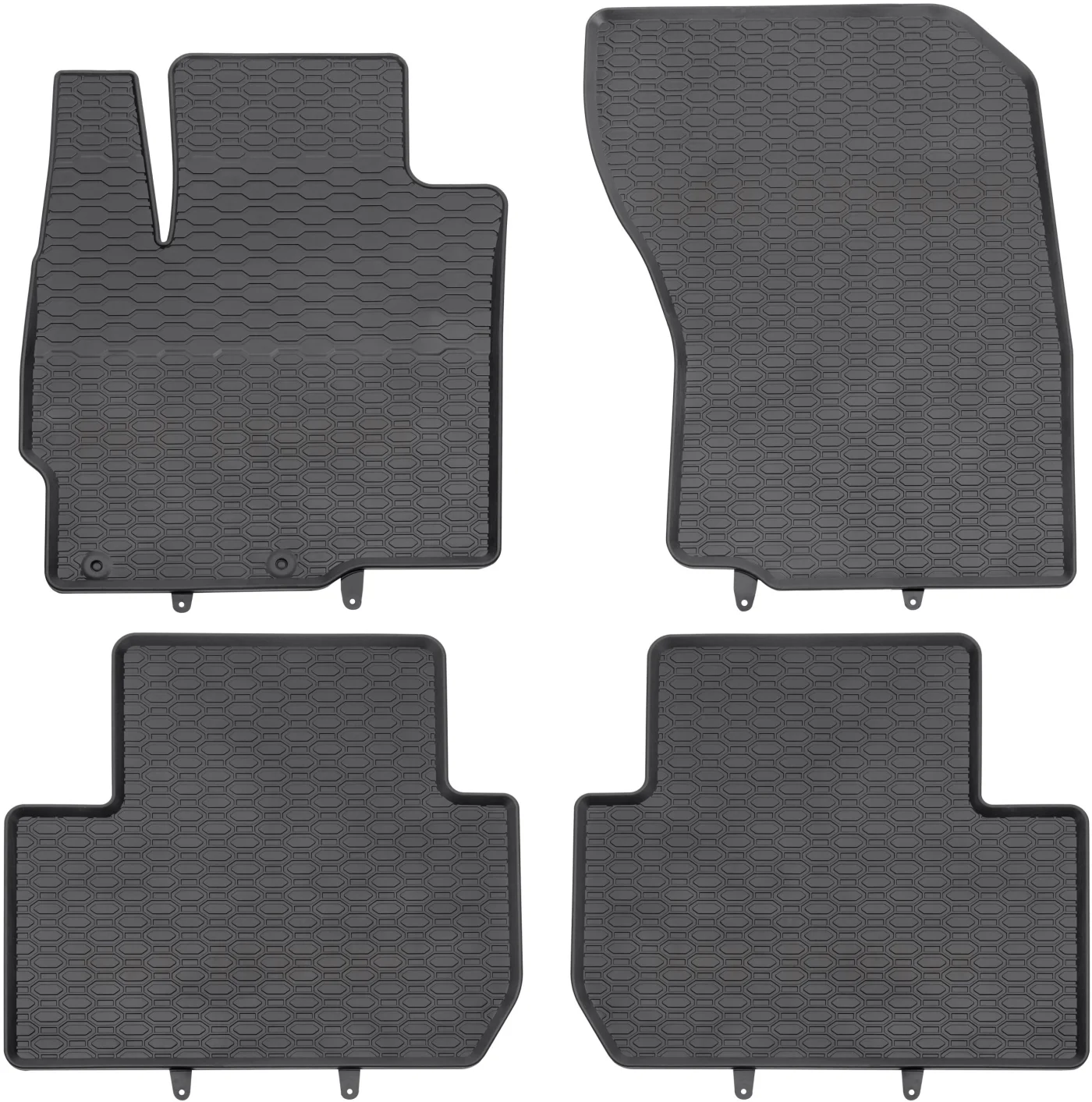 Dywaniki posiadają zamontowane już fabrycznie mocowania, które zabezpieczają dywaniki przed przesuwaniem się podczas użytkowania (ilość mocowań oraz ich typ jest zgodny z fabrycznym rozwiązaniem oryginalnych kołków występujących w samochodzie). Dywaniki zostały wykonane w kolorze czarnym a ich strukuta w plastry miodu sprawie, że prezentują się estetycznie w samochodzie.