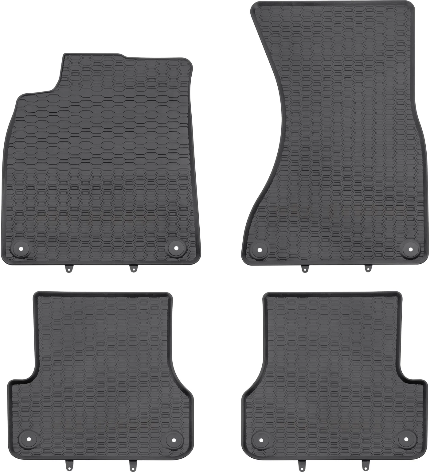Dywaniki posiadają zamontowane już fabrycznie mocowania, które zabezpieczają dywaniki przed przesuwaniem się podczas użytkowania (ilość mocowań oraz ich typ jest zgodny z fabrycznym rozwiązaniem oryginalnych kołków występujących w samochodzie). Dywaniki zostały wykonane w kolorze czarnym a ich strukuta w plastry miodu sprawie, że prezentują się estetycznie w samochodzie.