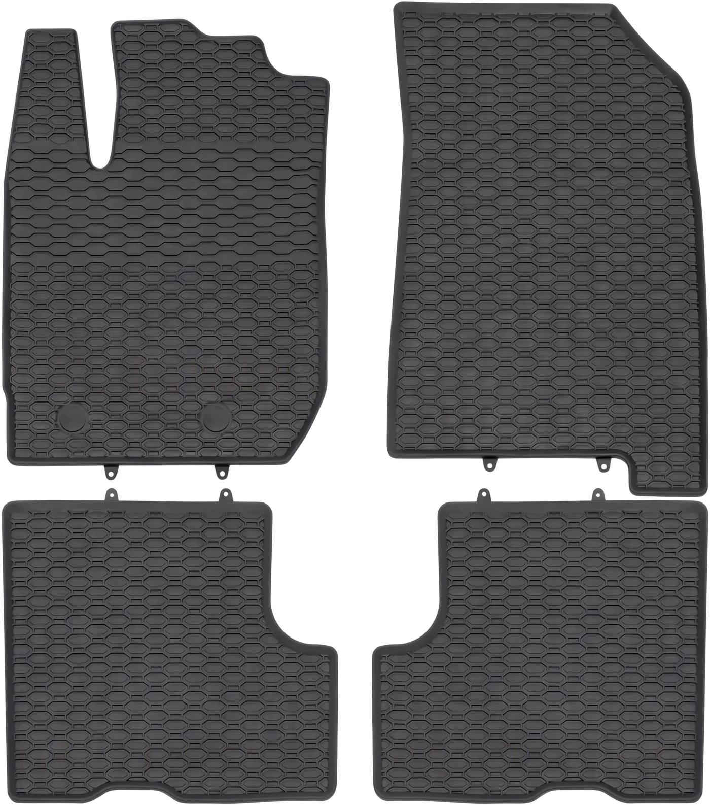 Dywaniki posiadają zamontowane już fabrycznie mocowania, które zabezpieczają dywaniki przed przesuwaniem się podczas użytkowania (ilość mocowań oraz ich typ jest zgodny z fabrycznym rozwiązaniem oryginalnych kołków występujących w samochodzie). Dywaniki zostały wykonane w kolorze czarnym a ich strukuta w plastry miodu sprawie, że prezentują się estetycznie w samochodzie.