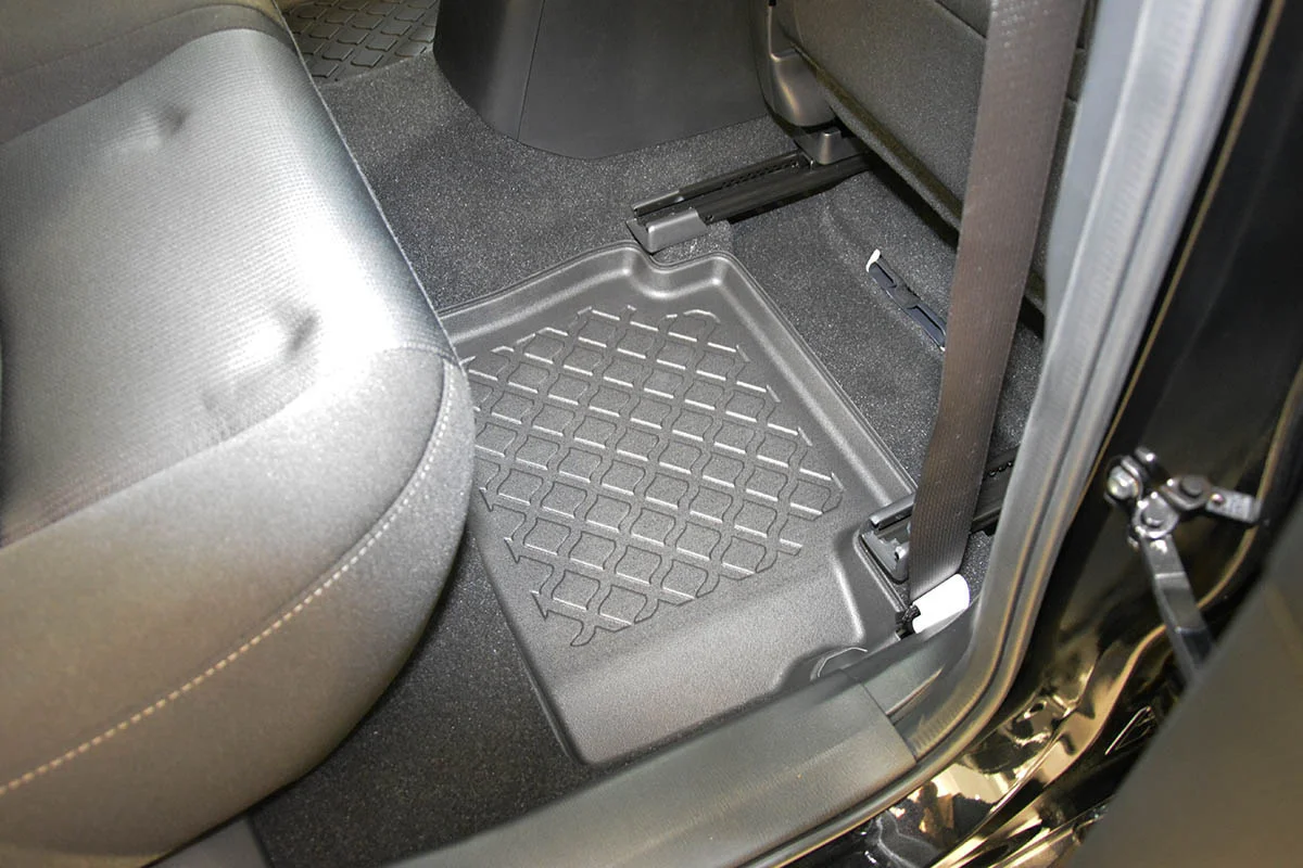 Dywaniki wyposażono w wysoki rant ochronny o wysokości ok. 2-3 cm, który skutecznie zatrzymuje wodę, błoto oraz inne zanieczyszczenia, zapobiegając ich przedostawaniu się na podłogę samochodu. Dzięki temu wnętrze pojazdu pozostaje czyste, nawet podczas trudnych warunków pogodowych.