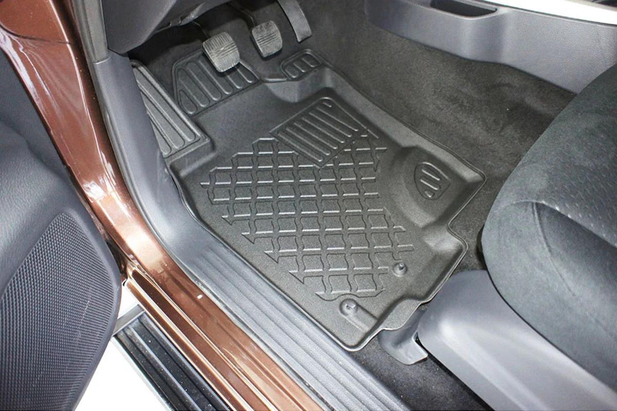 Wysoki brzeg dywaników chroni wnętrze auta przed zabrudzeniami, zamontowane stopery zapobiegają przesuwaniu się dywaników, zapewniając bezpieczeństwo podczas jazdy.