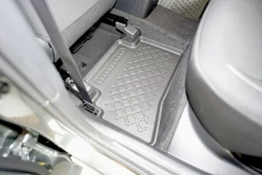 Wysoki brzeg dywaników chroni wnętrze auta przed zabrudzeniami, zamontowane stopery zapobiegają przesuwaniu się dywaników, zapewniając bezpieczeństwo podczas jazdy.