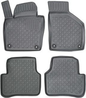 Dywaniki wyposażono w wysoki rant ochronny o wysokości ok. 2-3 cm, który skutecznie zatrzymuje wodę, błoto oraz inne zanieczyszczenia, zapobiegając ich przedostawaniu się na podłogę samochodu. Dzięki temu wnętrze pojazdu pozostaje czyste, nawet podczas trudnych warunków pogodowych.