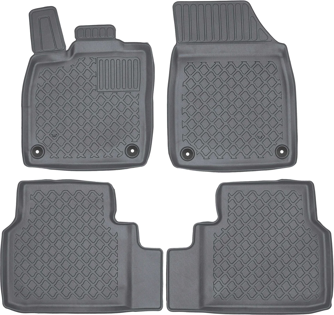 Dywaniki wyróżniają się także unikalną strukturą, która skutecznie zatrzymuje brud, piasek i wodę, ułatwiając utrzymanie czystości we wnętrzu auta. Czyszczenie dywaników jest wyjątkowo proste — wystarczy je spłukać wodą lub przetrzeć wilgotną ściereczką, aby odzyskały świeży wygląd.