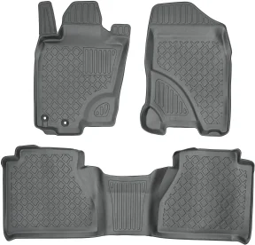 Dywaniki wyposażono w wysoki rant ochronny o wysokości ok. 2-3 cm, który skutecznie zatrzymuje wodę, błoto oraz inne zanieczyszczenia, zapobiegając ich przedostawaniu się na podłogę samochodu. Dzięki temu wnętrze pojazdu pozostaje czyste, nawet podczas trudnych warunków pogodowych.