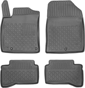 Dywaniki wyposażono w wysoki rant ochronny o wysokości ok. 2-3 cm, który skutecznie zatrzymuje wodę, błoto oraz inne zanieczyszczenia, zapobiegając ich przedostawaniu się na podłogę samochodu. Dzięki temu wnętrze pojazdu pozostaje czyste, nawet podczas trudnych warunków pogodowych.