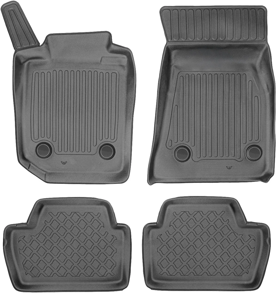 Dywaniki wyróżniają się także unikalną strukturą, która skutecznie zatrzymuje brud, piasek i wodę, ułatwiając utrzymanie czystości we wnętrzu auta. Czyszczenie dywaników jest wyjątkowo proste — wystarczy je spłukać wodą lub przetrzeć wilgotną ściereczką, aby odzyskały świeży wygląd.