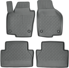 Dywaniki wyposażono w wysoki rant ochronny o wysokości ok. 2-3 cm, który skutecznie zatrzymuje wodę, błoto oraz inne zanieczyszczenia, zapobiegając ich przedostawaniu się na podłogę samochodu. Dzięki temu wnętrze pojazdu pozostaje czyste, nawet podczas trudnych warunków pogodowych.