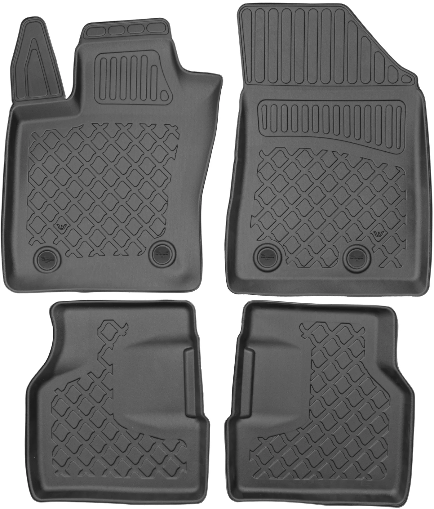 Dywaniki wyróżniają się także unikalną strukturą, która skutecznie zatrzymuje brud, piasek i wodę, ułatwiając utrzymanie czystości we wnętrzu auta. Czyszczenie dywaników jest wyjątkowo proste — wystarczy je spłukać wodą lub przetrzeć wilgotną ściereczką, aby odzyskały świeży wygląd.