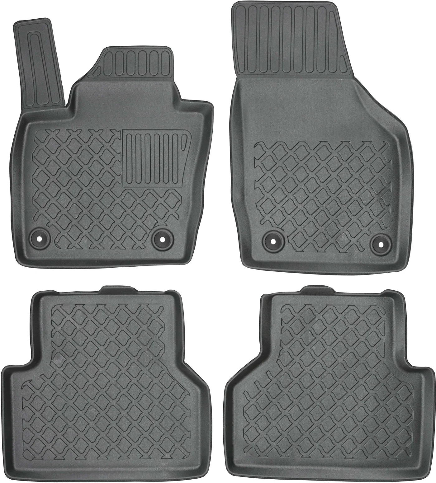 Każdy komplet dywaników jest precyzyjnie zaprojektowany pod konkretny model samochodu, dzięki czemu ich kształt idealnie odwzorowuje płytę podłogową.