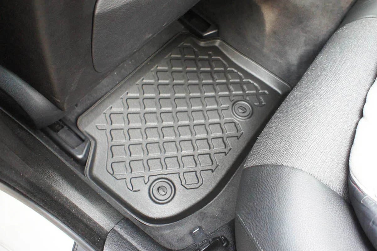Wysoki brzeg dywaników chroni wnętrze auta przed zabrudzeniami, zamontowane stopery zapobiegają przesuwaniu się dywaników, zapewniając bezpieczeństwo podczas jazdy.