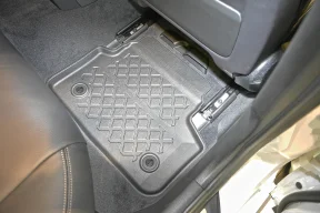 Wysoki brzeg dywaników chroni wnętrze auta przed zabrudzeniami, zamontowane stopery zapobiegają przesuwaniu się dywaników, zapewniając bezpieczeństwo podczas jazdy.