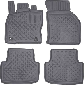 Dywaniki wyposażono w wysoki rant ochronny o wysokości ok. 2-3 cm, który skutecznie zatrzymuje wodę, błoto oraz inne zanieczyszczenia, zapobiegając ich przedostawaniu się na podłogę samochodu. Dzięki temu wnętrze pojazdu pozostaje czyste, nawet podczas trudnych warunków pogodowych.