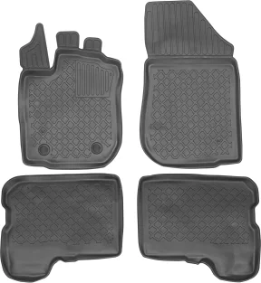 Dywaniki wyposażono w wysoki rant ochronny o wysokości ok. 2-3 cm, który skutecznie zatrzymuje wodę, błoto oraz inne zanieczyszczenia, zapobiegając ich przedostawaniu się na podłogę samochodu. Dzięki temu wnętrze pojazdu pozostaje czyste, nawet podczas trudnych warunków pogodowych.