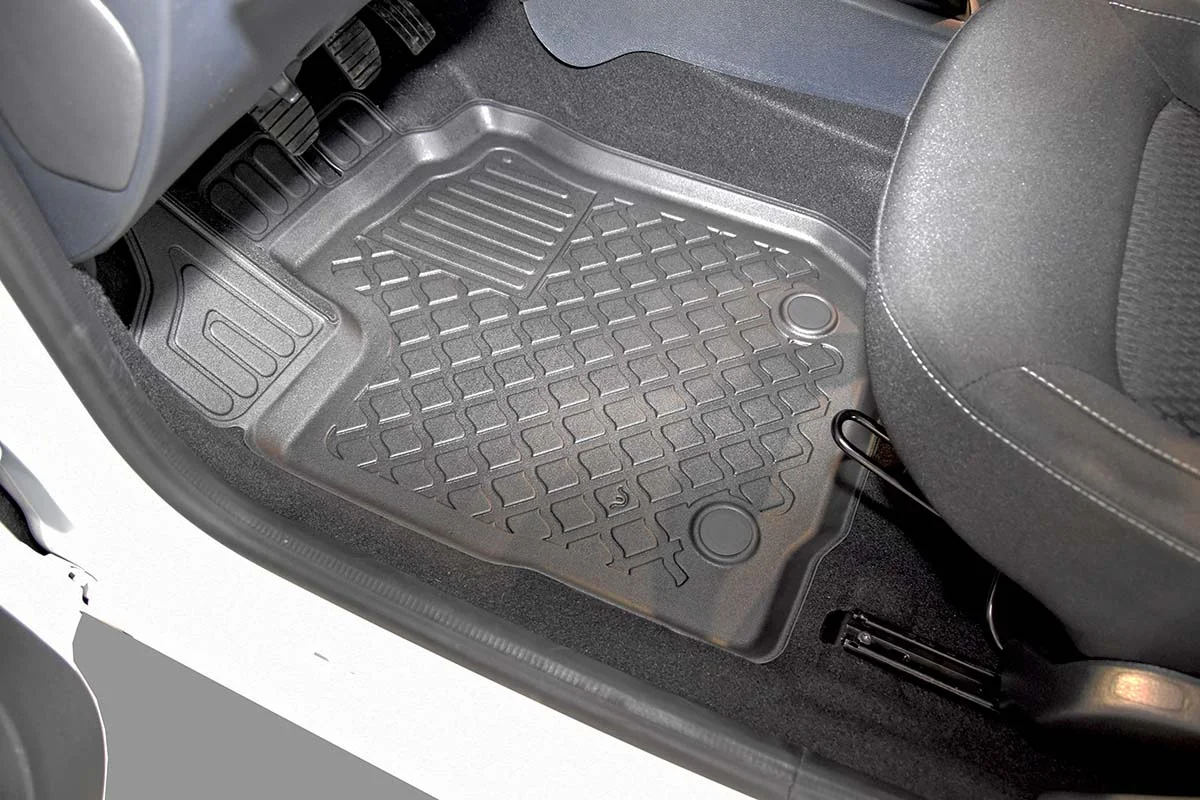Wysoki brzeg dywaników chroni wnętrze auta przed zabrudzeniami, zamontowane stopery zapobiegają przesuwaniu się dywaników, zapewniając bezpieczeństwo podczas jazdy.
