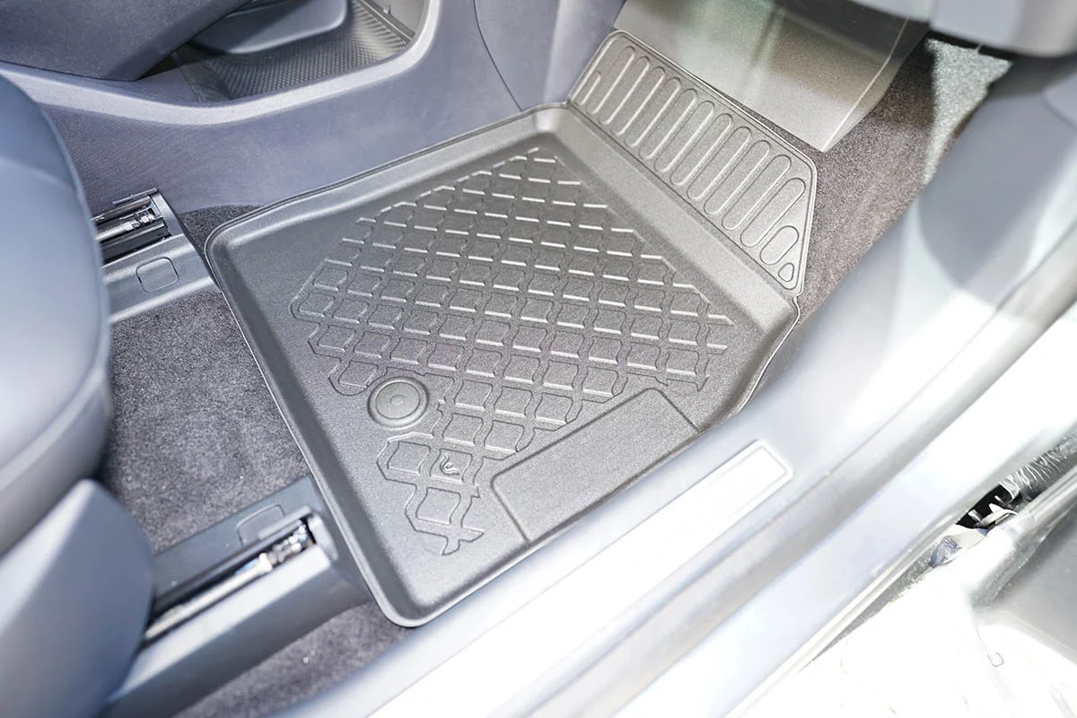 Wysoki brzeg dywaników chroni wnętrze auta przed zabrudzeniami, zamontowane stopery zapobiegają przesuwaniu się dywaników, zapewniając bezpieczeństwo podczas jazdy.