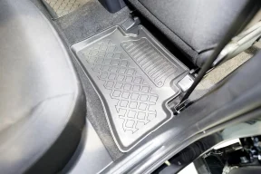 Wysoki brzeg dywaników chroni wnętrze auta przed zabrudzeniami, zamontowane stopery zapobiegają przesuwaniu się dywaników, zapewniając bezpieczeństwo podczas jazdy.