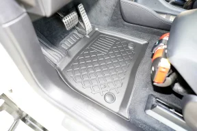 Wysoki brzeg dywaników chroni wnętrze auta przed zabrudzeniami, zamontowane stopery zapobiegają przesuwaniu się dywaników, zapewniając bezpieczeństwo podczas jazdy.