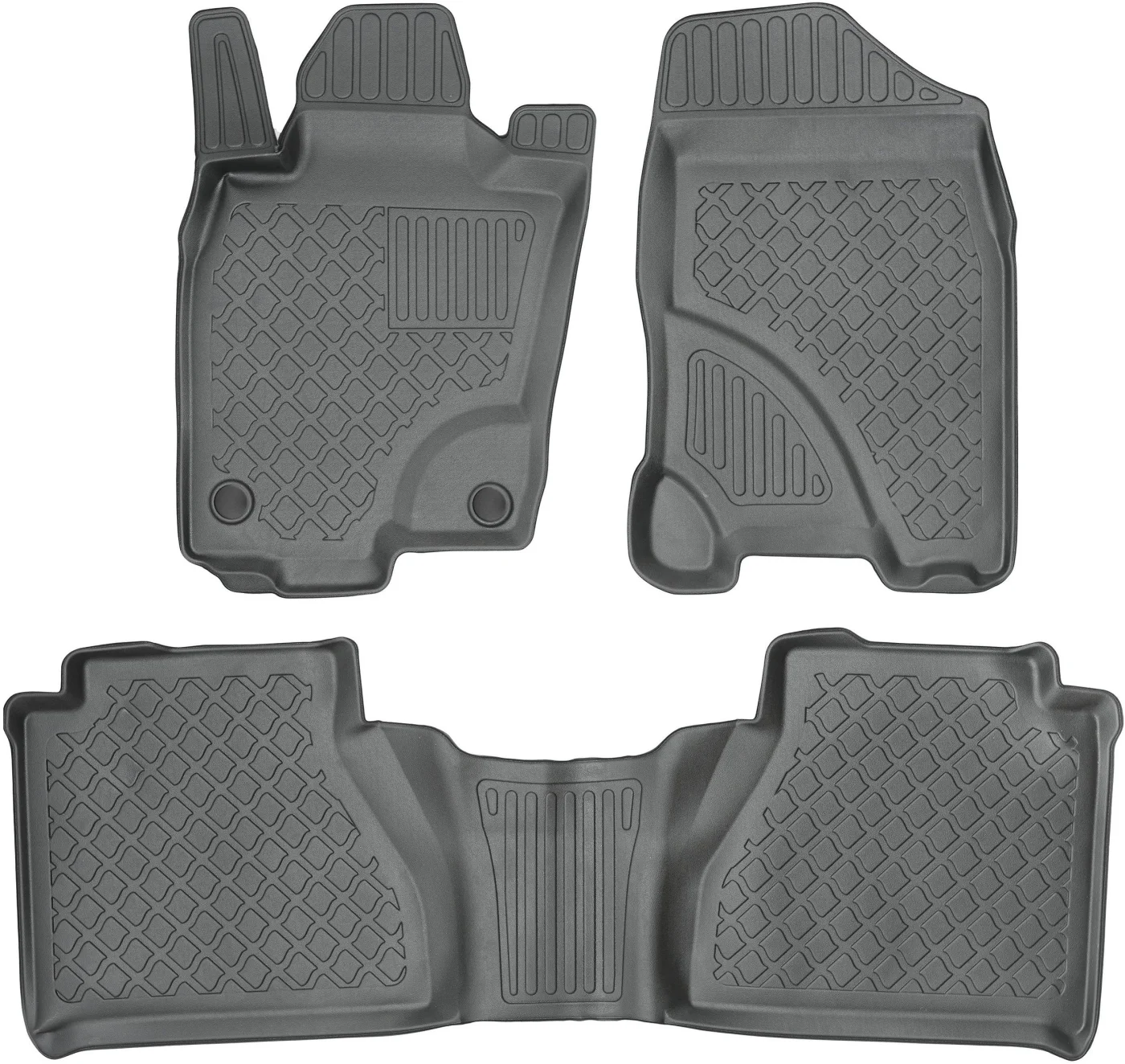 Każdy komplet dywaników jest precyzyjnie zaprojektowany pod konkretny model samochodu, dzięki czemu ich kształt idealnie odwzorowuje płytę podłogową.