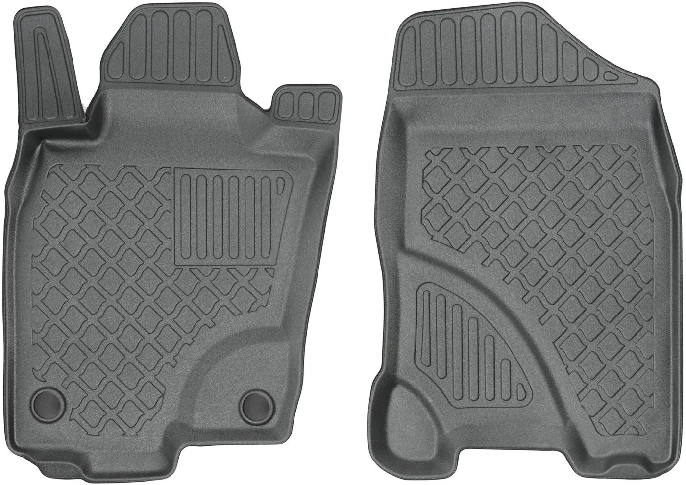Wysoki brzeg dywaników chroni wnętrze auta przed zabrudzeniami, zamontowane stopery zapobiegają przesuwaniu się dywaników, zapewniając bezpieczeństwo podczas jazdy.