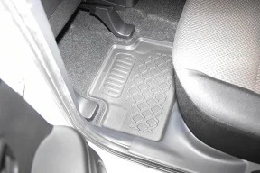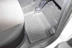 Wysoki brzeg dywaników chroni wnętrze auta przed zabrudzeniami, zamontowane stopery zapobiegają przesuwaniu się dywaników, zapewniając bezpieczeństwo podczas jazdy.