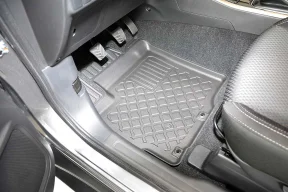 Wysoki brzeg dywaników chroni wnętrze auta przed zabrudzeniami, zamontowane stopery zapobiegają przesuwaniu się dywaników, zapewniając bezpieczeństwo podczas jazdy.