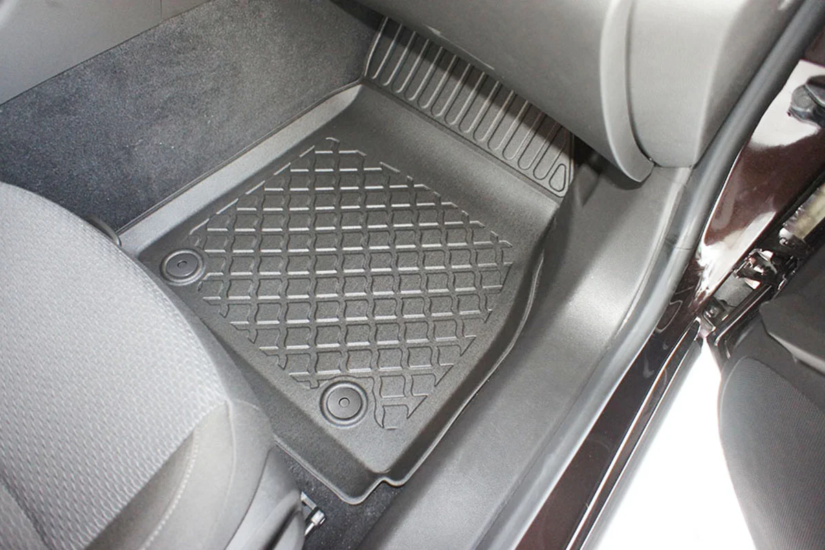 Wysoki brzeg dywaników chroni wnętrze auta przed zabrudzeniami, zamontowane stopery zapobiegają przesuwaniu się dywaników, zapewniając bezpieczeństwo podczas jazdy.