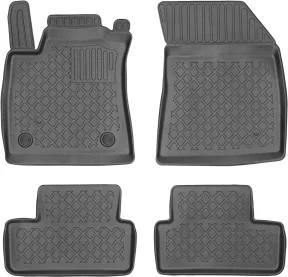 Dywaniki wyposażono w wysoki rant ochronny o wysokości ok. 2-3 cm, który skutecznie zatrzymuje wodę, błoto oraz inne zanieczyszczenia, zapobiegając ich przedostawaniu się na podłogę samochodu. Dzięki temu wnętrze pojazdu pozostaje czyste, nawet podczas trudnych warunków pogodowych.