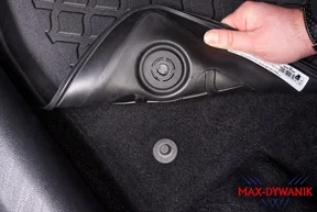 Nasze dywaniki samochodowe są wyposażone w kompletny zestaw mocowań, dopasowany do konkretnej marki i modelu pojazdu. Mocowania są fabrycznie zamontowane na dywanikach i idealnie współpracują z oryginalnymi uchwytami w podłodze samochodu.