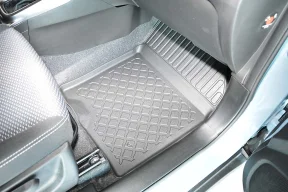 Wysoki brzeg dywaników chroni wnętrze auta przed zabrudzeniami, zamontowane stopery zapobiegają przesuwaniu się dywaników, zapewniając bezpieczeństwo podczas jazdy.