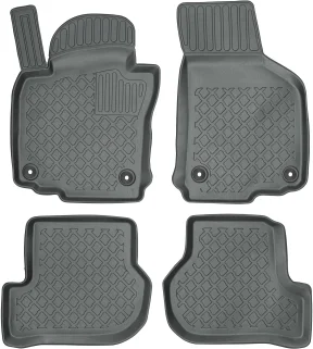 Dywaniki wyposażono w wysoki rant ochronny o wysokości ok. 2-3 cm, który skutecznie zatrzymuje wodę, błoto oraz inne zanieczyszczenia, zapobiegając ich przedostawaniu się na podłogę samochodu. Dzięki temu wnętrze pojazdu pozostaje czyste, nawet podczas trudnych warunków pogodowych.