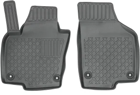 Dywaniki wyposażono w wysoki rant ochronny o wysokości ok. 2-3 cm, który skutecznie zatrzymuje wodę, błoto oraz inne zanieczyszczenia, zapobiegając ich przedostawaniu się na podłogę samochodu. Dzięki temu wnętrze pojazdu pozostaje czyste, nawet podczas trudnych warunków pogodowych.