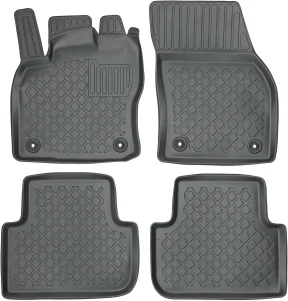 Dywaniki wyposażono w wysoki rant ochronny o wysokości ok. 2-3 cm, który skutecznie zatrzymuje wodę, błoto oraz inne zanieczyszczenia, zapobiegając ich przedostawaniu się na podłogę samochodu. Dzięki temu wnętrze pojazdu pozostaje czyste, nawet podczas trudnych warunków pogodowych.