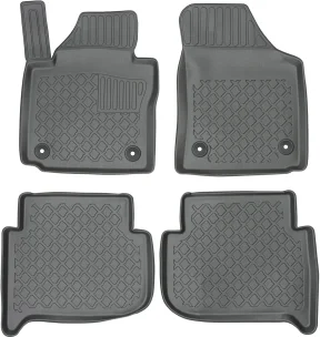 Dywaniki wyposażono w wysoki rant ochronny o wysokości ok. 2-3 cm, który skutecznie zatrzymuje wodę, błoto oraz inne zanieczyszczenia, zapobiegając ich przedostawaniu się na podłogę samochodu. Dzięki temu wnętrze pojazdu pozostaje czyste, nawet podczas trudnych warunków pogodowych.