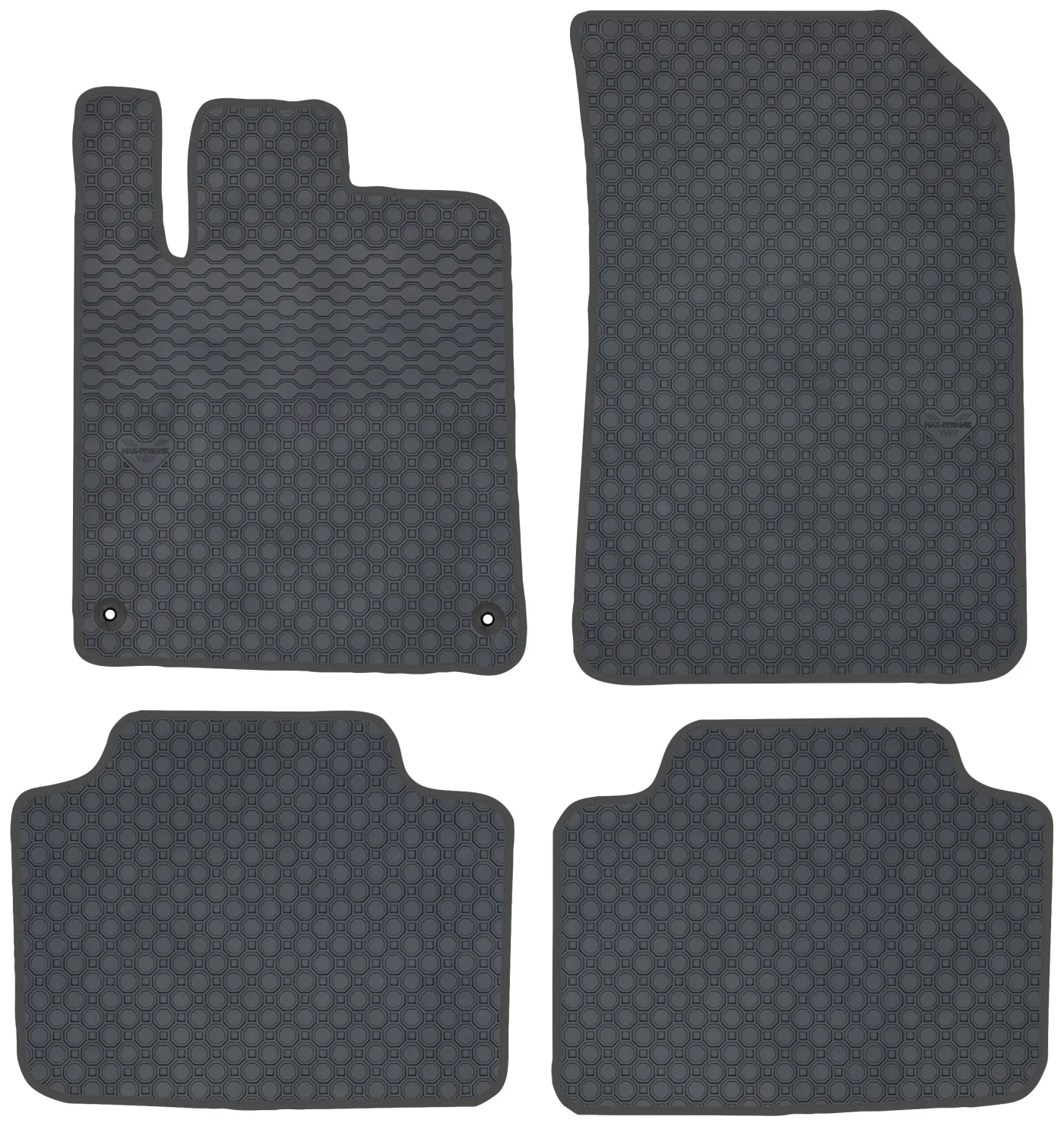 Wierzchnia strona dywaników, wypełniona na całej powierzchni strukturą ośmiokątów (plastra miodu) została pokryta podwójną warstwą gumy. Spód pokryty gumowymi wypustkami, które znacząco wydłużają żywotność materiału oraz zabezpieczają przed przesuwaniem się dywaników podczas jazdy. Specjalnie zaprojektowane wzmocnienie na dywaniku kierowcy zostało stworzone w oparciu o wieloletnie doświadczenie chroniąc najbardziej wrażliwą część dywanika przed przetarciem.