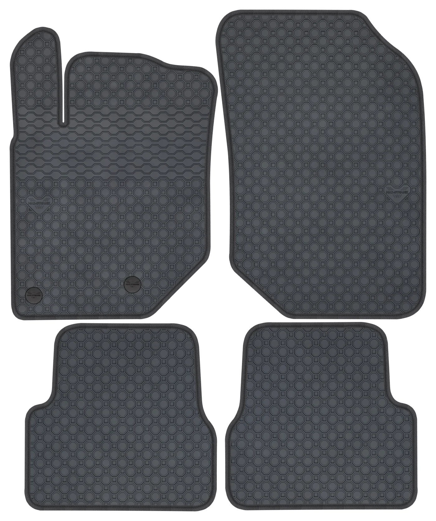 Wierzchnia strona dywaników, wypełniona na całej powierzchni strukturą ośmiokątów (plastra miodu) została pokryta podwójną warstwą gumy. Spód pokryty gumowymi wypustkami, które znacząco wydłużają żywotność materiału oraz zabezpieczają przed przesuwaniem się dywaników podczas jazdy. Specjalnie zaprojektowane wzmocnienie na dywaniku kierowcy zostało stworzone w oparciu o wieloletnie doświadczenie chroniąc najbardziej wrażliwą część dywanika przed przetarciem.