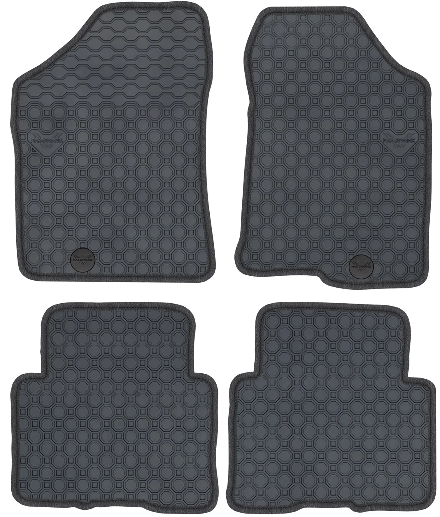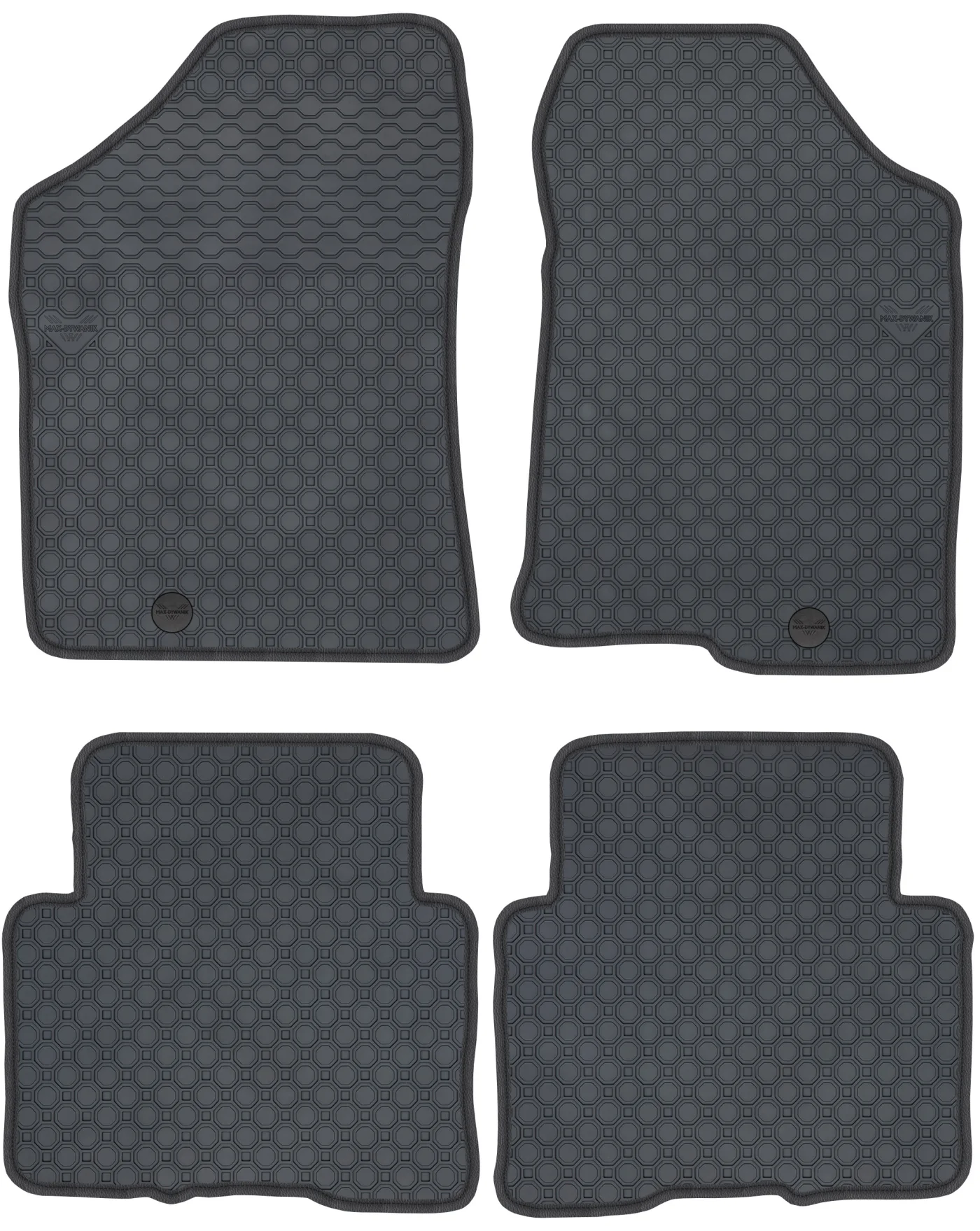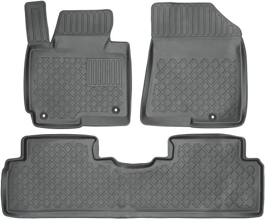 Wierzchnia strona dywaników, wypełniona na całej powierzchni strukturą ośmiokątów (plastra miodu) została pokryta podwójną warstwą gumy. Spód pokryty gumowymi wypustkami, które znacząco wydłużają żywotność materiału oraz zabezpieczają przed przesuwaniem się dywaników podczas jazdy. Specjalnie zaprojektowane wzmocnienie na dywaniku kierowcy zostało stworzone w oparciu o wieloletnie doświadczenie chroniąc najbardziej wrażliwą część dywanika przed przetarciem.