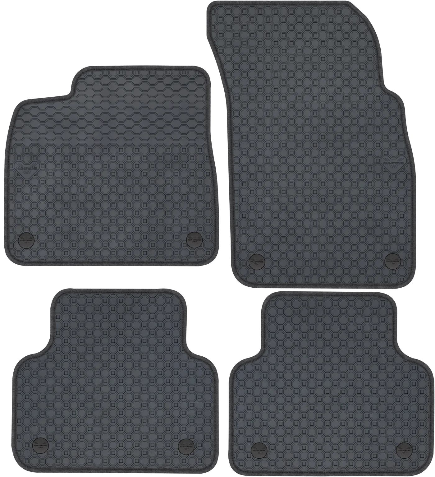 Wierzchnia strona dywaników, wypełniona na całej powierzchni strukturą ośmiokątów (plastra miodu) została pokryta podwójną warstwą gumy. Spód pokryty gumowymi wypustkami, które znacząco wydłużają żywotność materiału oraz zabezpieczają przed przesuwaniem się dywaników podczas jazdy. Specjalnie zaprojektowane wzmocnienie na dywaniku kierowcy zostało stworzone w oparciu o wieloletnie doświadczenie chroniąc najbardziej wrażliwą część dywanika przed przetarciem.
