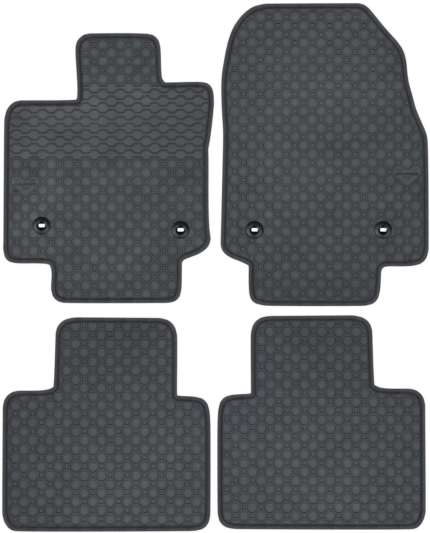 Wierzchnia strona dywaników, wypełniona na całej powierzchni strukturą ośmiokątów (plastra miodu) została pokryta podwójną warstwą gumy. Spód pokryty gumowymi wypustkami, które znacząco wydłużają żywotność materiału oraz zabezpieczają przed przesuwaniem się dywaników podczas jazdy. Specjalnie zaprojektowane wzmocnienie na dywaniku kierowcy zostało stworzone w oparciu o wieloletnie doświadczenie chroniąc najbardziej wrażliwą część dywanika przed przetarciem.
