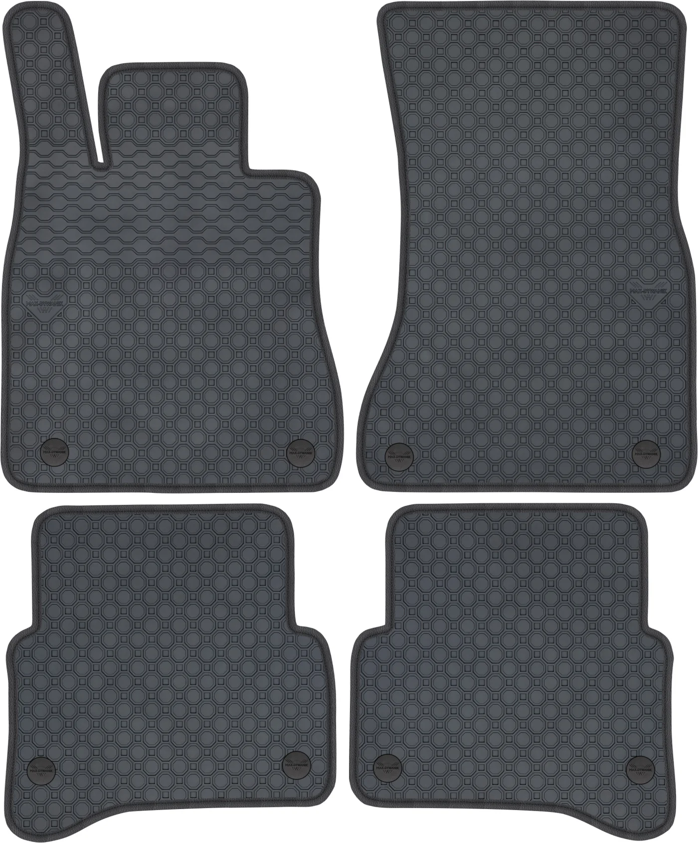 Wierzchnia strona dywaników, wypełniona na całej powierzchni strukturą ośmiokątów (plastra miodu) została pokryta podwójną warstwą gumy. Spód pokryty gumowymi wypustkami, które znacząco wydłużają żywotność materiału oraz zabezpieczają przed przesuwaniem się dywaników podczas jazdy. Specjalnie zaprojektowane wzmocnienie na dywaniku kierowcy zostało stworzone w oparciu o wieloletnie doświadczenie chroniąc najbardziej wrażliwą część dywanika przed przetarciem.