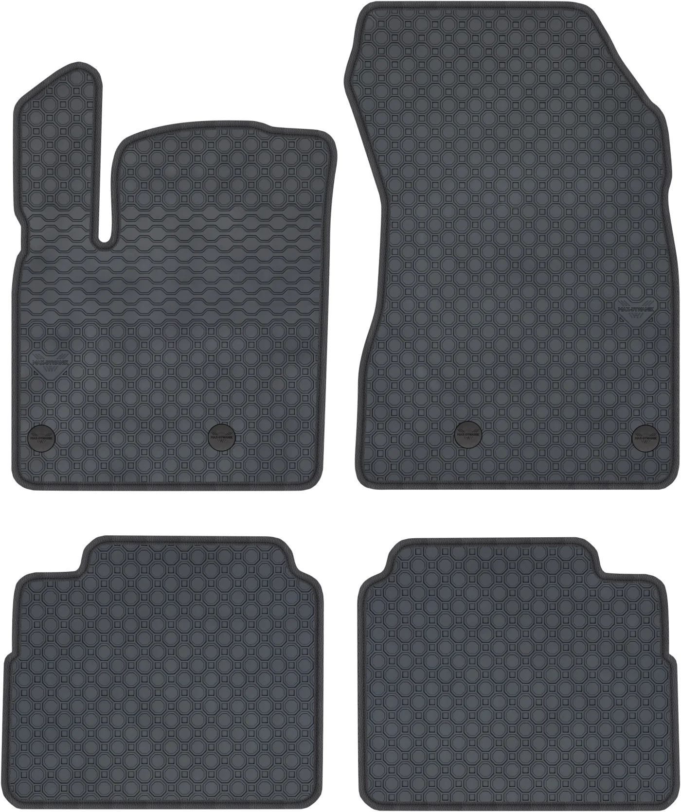 Wierzchnia strona dywaników, wypełniona na całej powierzchni strukturą ośmiokątów (plastra miodu) została pokryta podwójną warstwą gumy. Spód pokryty gumowymi wypustkami, które znacząco wydłużają żywotność materiału oraz zabezpieczają przed przesuwaniem się dywaników podczas jazdy. Specjalnie zaprojektowane wzmocnienie na dywaniku kierowcy zostało stworzone w oparciu o wieloletnie doświadczenie chroniąc najbardziej wrażliwą część dywanika przed przetarciem.