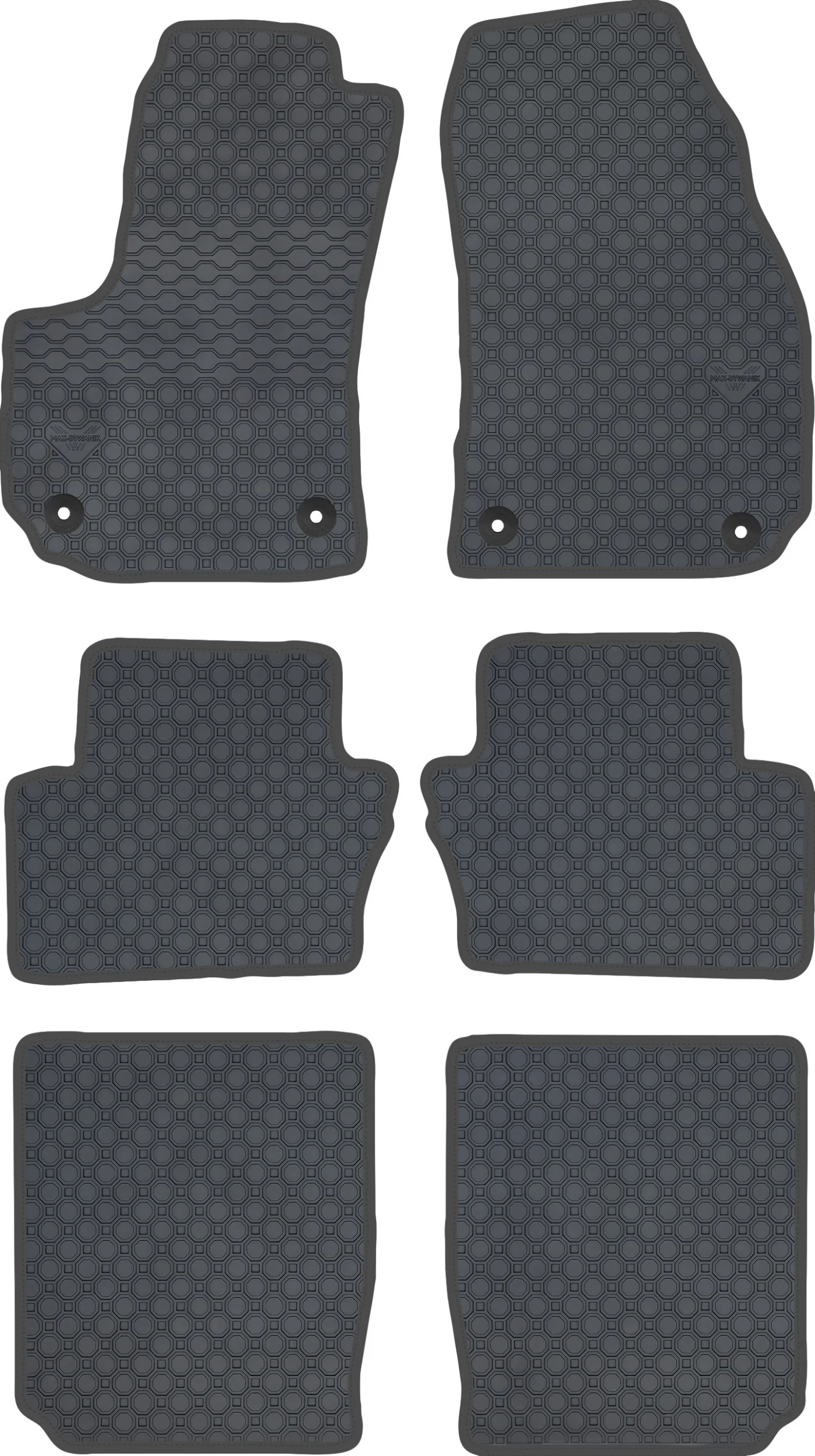 Wierzchnia strona dywaników, wypełniona na całej powierzchni strukturą ośmiokątów (plastra miodu) została pokryta podwójną warstwą gumy. Spód pokryty gumowymi wypustkami, które znacząco wydłużają żywotność materiału oraz zabezpieczają przed przesuwaniem się dywaników podczas jazdy. Specjalnie zaprojektowane wzmocnienie na dywaniku kierowcy zostało stworzone w oparciu o wieloletnie doświadczenie chroniąc najbardziej wrażliwą część dywanika przed przetarciem.
