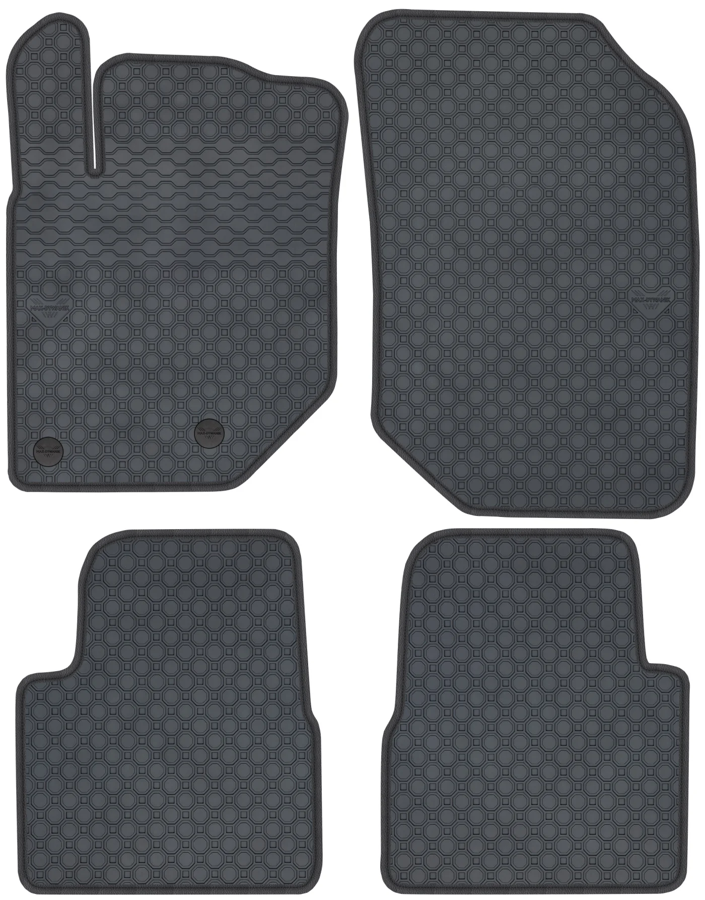 Wierzchnia strona dywaników, wypełniona na całej powierzchni strukturą ośmiokątów (plastra miodu) została pokryta podwójną warstwą gumy. Spód pokryty gumowymi wypustkami, które znacząco wydłużają żywotność materiału oraz zabezpieczają przed przesuwaniem się dywaników podczas jazdy. Specjalnie zaprojektowane wzmocnienie na dywaniku kierowcy zostało stworzone w oparciu o wieloletnie doświadczenie chroniąc najbardziej wrażliwą część dywanika przed przetarciem.