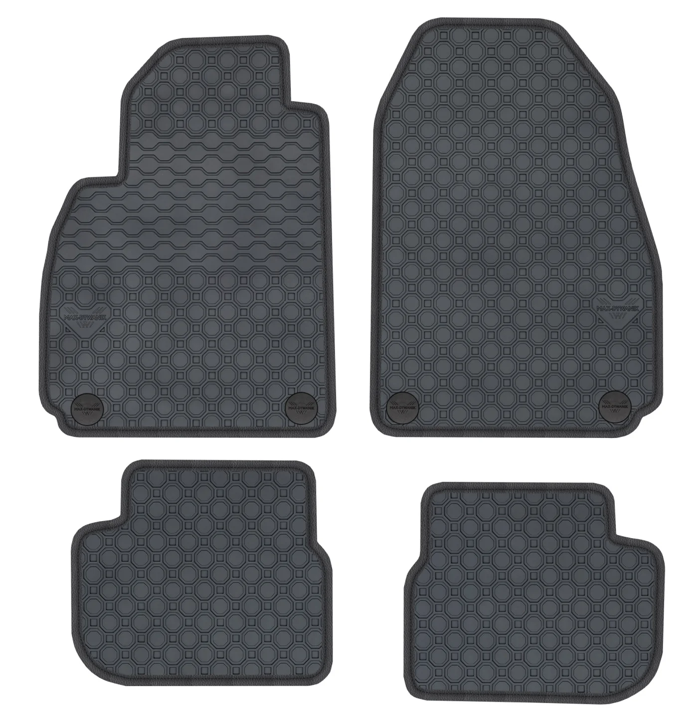 Wierzchnia strona dywaników, wypełniona na całej powierzchni strukturą ośmiokątów (plastra miodu) została pokryta podwójną warstwą gumy. Spód pokryty gumowymi wypustkami, które znacząco wydłużają żywotność materiału oraz zabezpieczają przed przesuwaniem się dywaników podczas jazdy. Specjalnie zaprojektowane wzmocnienie na dywaniku kierowcy zostało stworzone w oparciu o wieloletnie doświadczenie chroniąc najbardziej wrażliwą część dywanika przed przetarciem.
