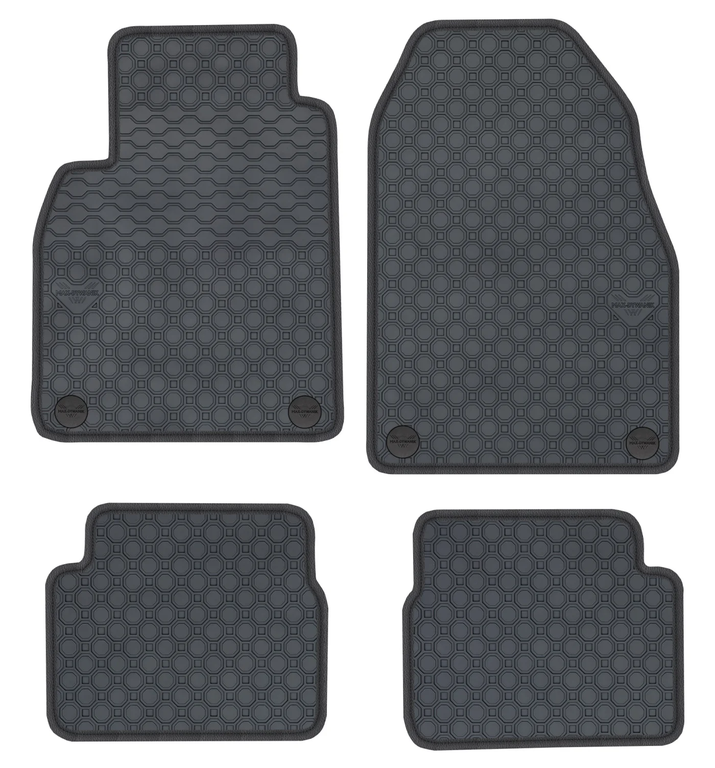 Wierzchnia strona dywaników, wypełniona na całej powierzchni strukturą ośmiokątów (plastra miodu) została pokryta podwójną warstwą gumy. Spód pokryty gumowymi wypustkami, które znacząco wydłużają żywotność materiału oraz zabezpieczają przed przesuwaniem się dywaników podczas jazdy. Specjalnie zaprojektowane wzmocnienie na dywaniku kierowcy zostało stworzone w oparciu o wieloletnie doświadczenie chroniąc najbardziej wrażliwą część dywanika przed przetarciem.