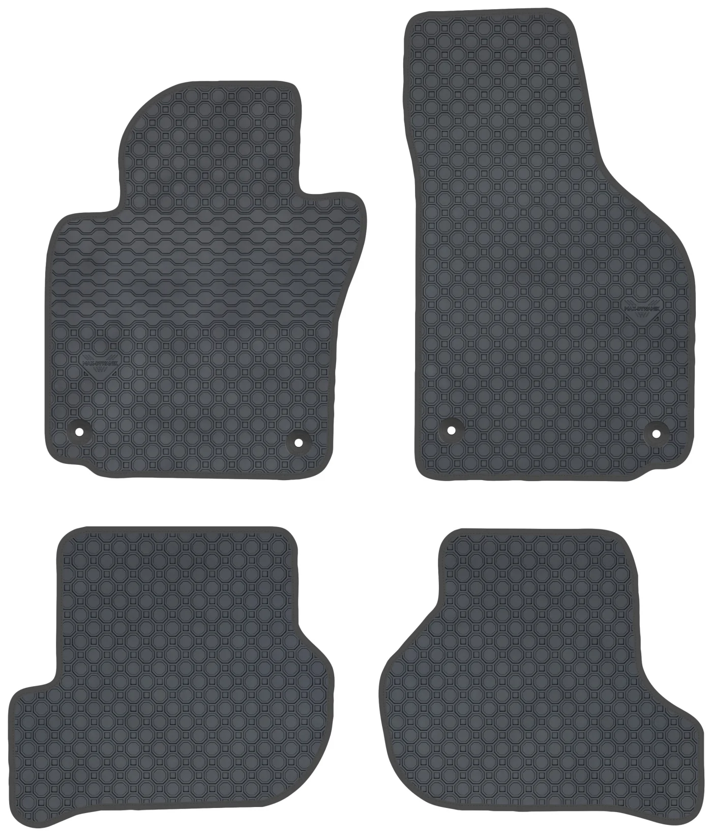 Wierzchnia strona dywaników, wypełniona na całej powierzchni strukturą ośmiokątów (plastra miodu) została pokryta podwójną warstwą gumy. Spód pokryty gumowymi wypustkami, które znacząco wydłużają żywotność materiału oraz zabezpieczają przed przesuwaniem się dywaników podczas jazdy. Specjalnie zaprojektowane wzmocnienie na dywaniku kierowcy zostało stworzone w oparciu o wieloletnie doświadczenie chroniąc najbardziej wrażliwą część dywanika przed przetarciem.