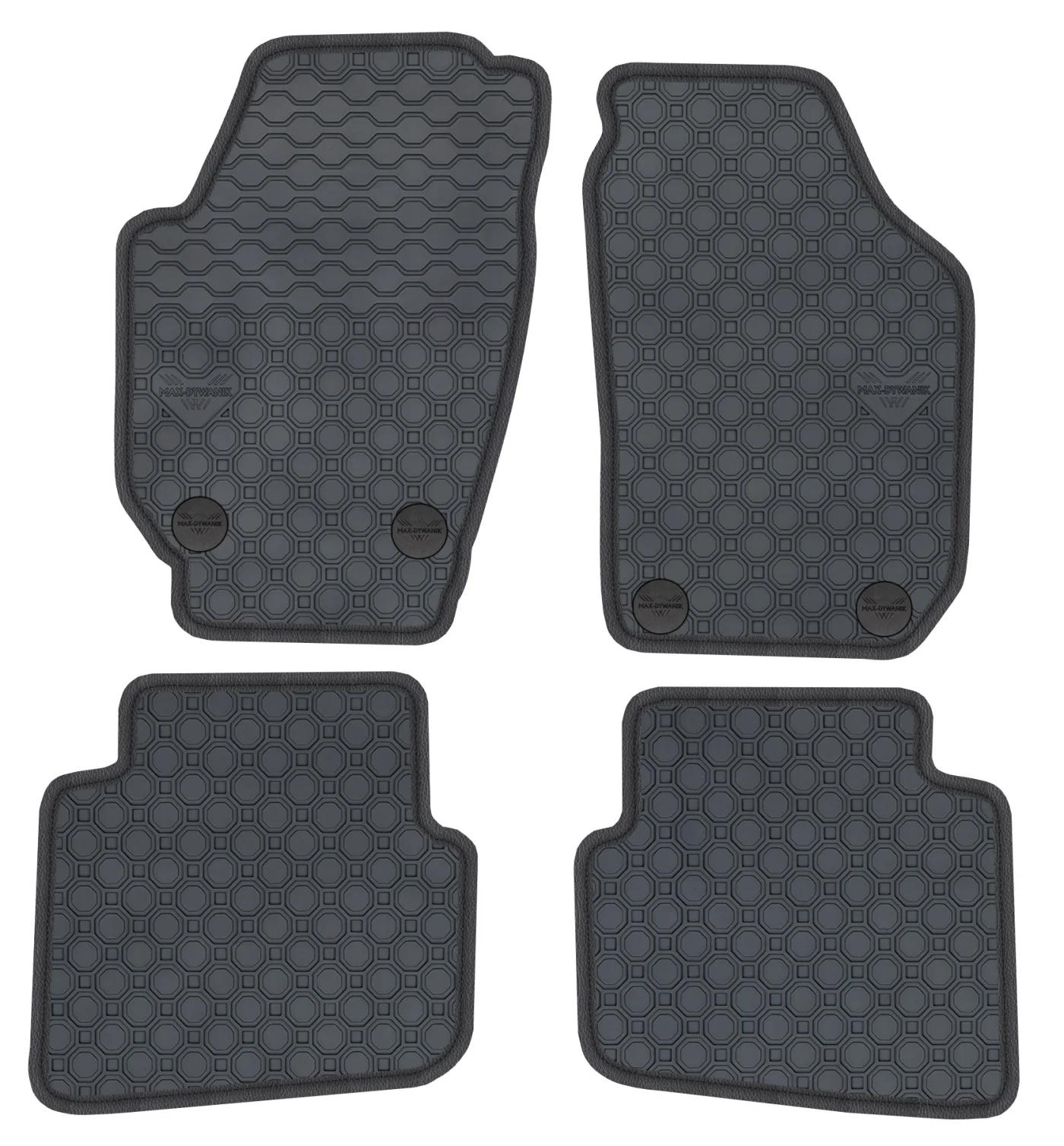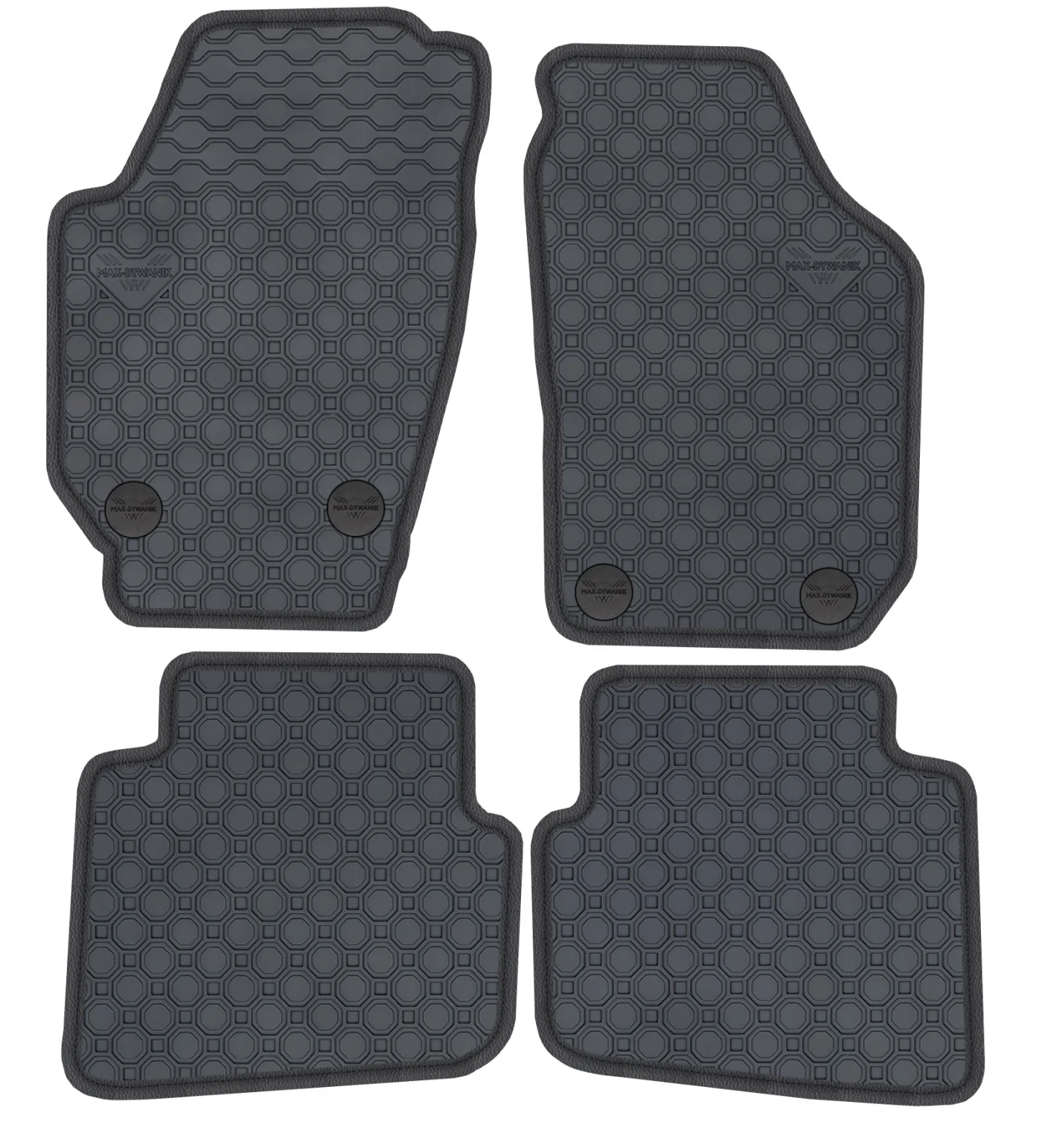 Wierzchnia strona dywaników, wypełniona na całej powierzchni strukturą ośmiokątów (plastra miodu) została pokryta podwójną warstwą gumy. Spód pokryty gumowymi wypustkami, które znacząco wydłużają żywotność materiału oraz zabezpieczają przed przesuwaniem się dywaników podczas jazdy. Specjalnie zaprojektowane wzmocnienie na dywaniku kierowcy zostało stworzone w oparciu o wieloletnie doświadczenie chroniąc najbardziej wrażliwą część dywanika przed przetarciem.