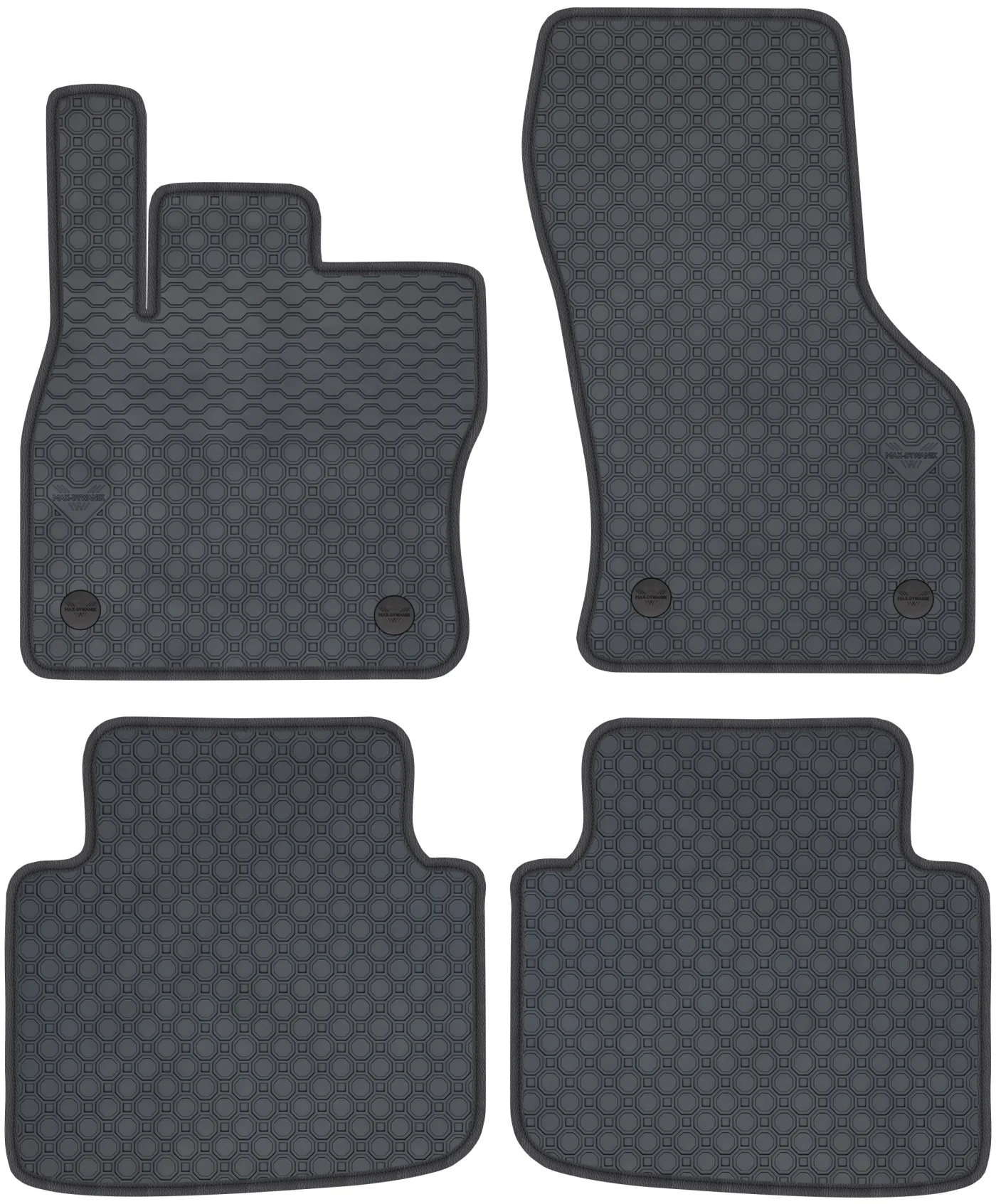 Wierzchnia strona dywaników, wypełniona na całej powierzchni strukturą ośmiokątów (plastra miodu) została pokryta podwójną warstwą gumy. Spód pokryty gumowymi wypustkami, które znacząco wydłużają żywotność materiału oraz zabezpieczają przed przesuwaniem się dywaników podczas jazdy. Specjalnie zaprojektowane wzmocnienie na dywaniku kierowcy zostało stworzone w oparciu o wieloletnie doświadczenie chroniąc najbardziej wrażliwą część dywanika przed przetarciem.